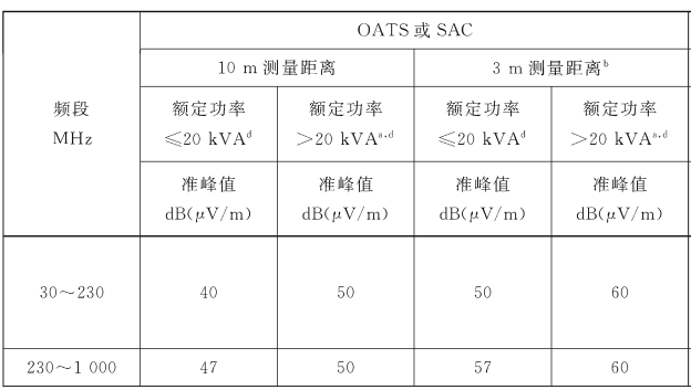 圖2 1組A類(lèi)設(shè)備的電磁輻射騷擾限值要求